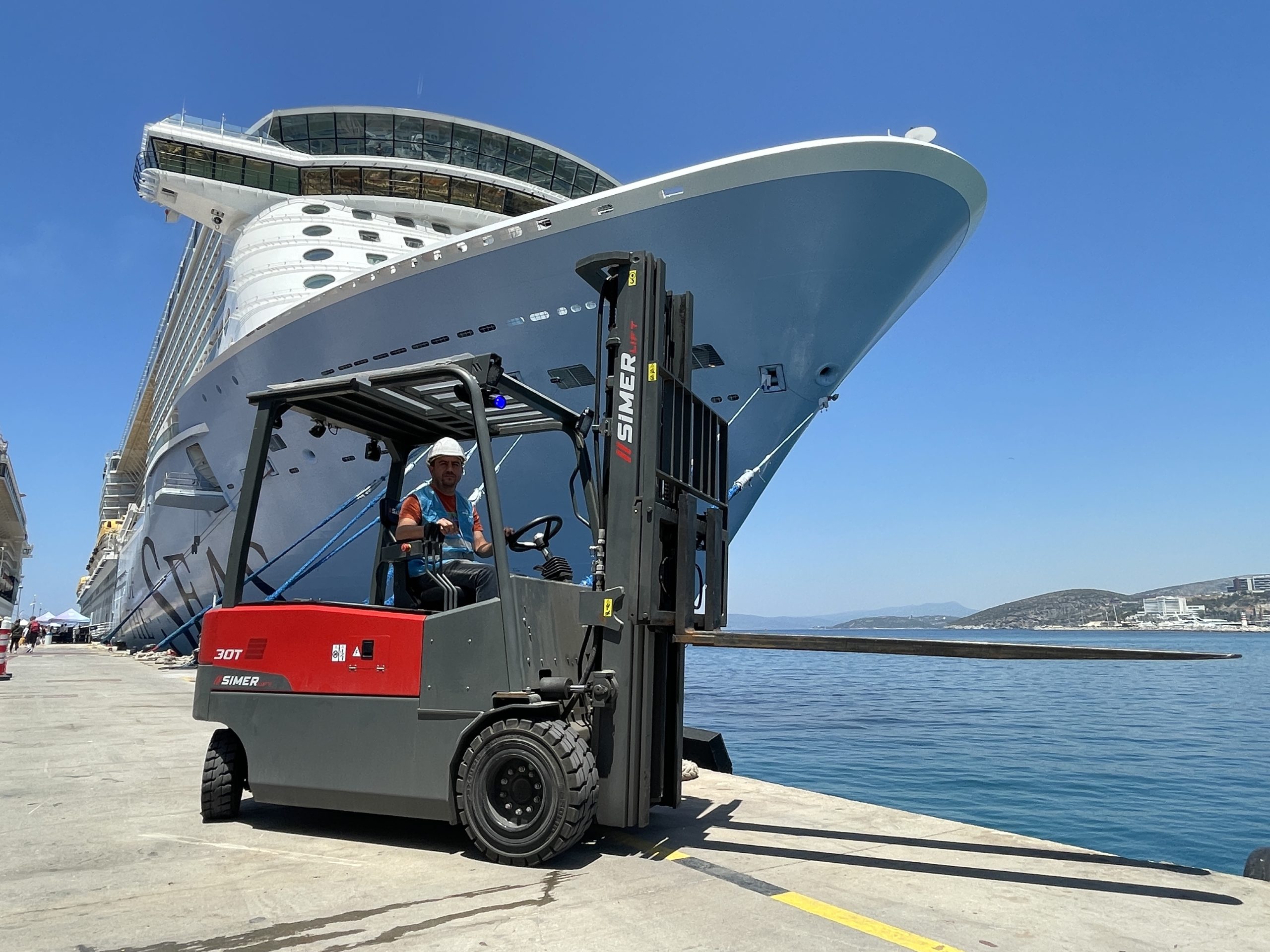 To reduce emissions and increase energy efficiency in port operations, we have replaced diesel-powered forklifts with electric models for use within the port area.